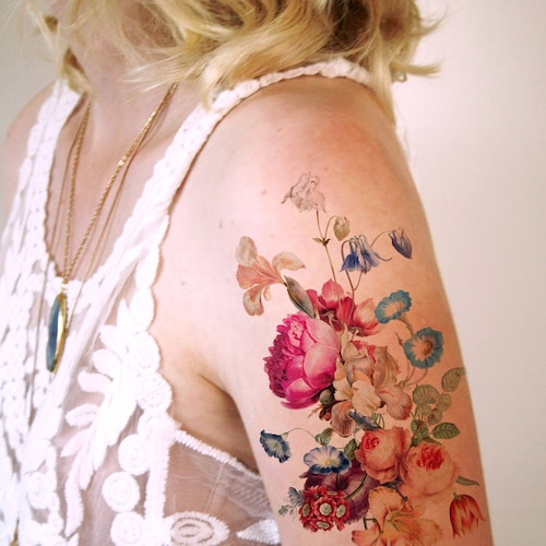 Large Vintage Floral Temporary Tattoo Flower Temporary Etsy